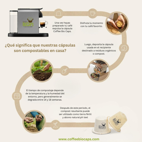 Coffee Bio Caps ofrece cápsulas de café 100% compostables en casa, compatibles con máquinas Nespresso. Elaboradas con materiales vegetales, conservan el sabor premium del café mientras reducen el impacto ambiental. Nuestra misión transformar el consumo de café con soluciones sostenibles y de calidad.